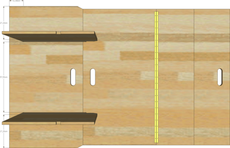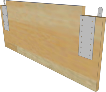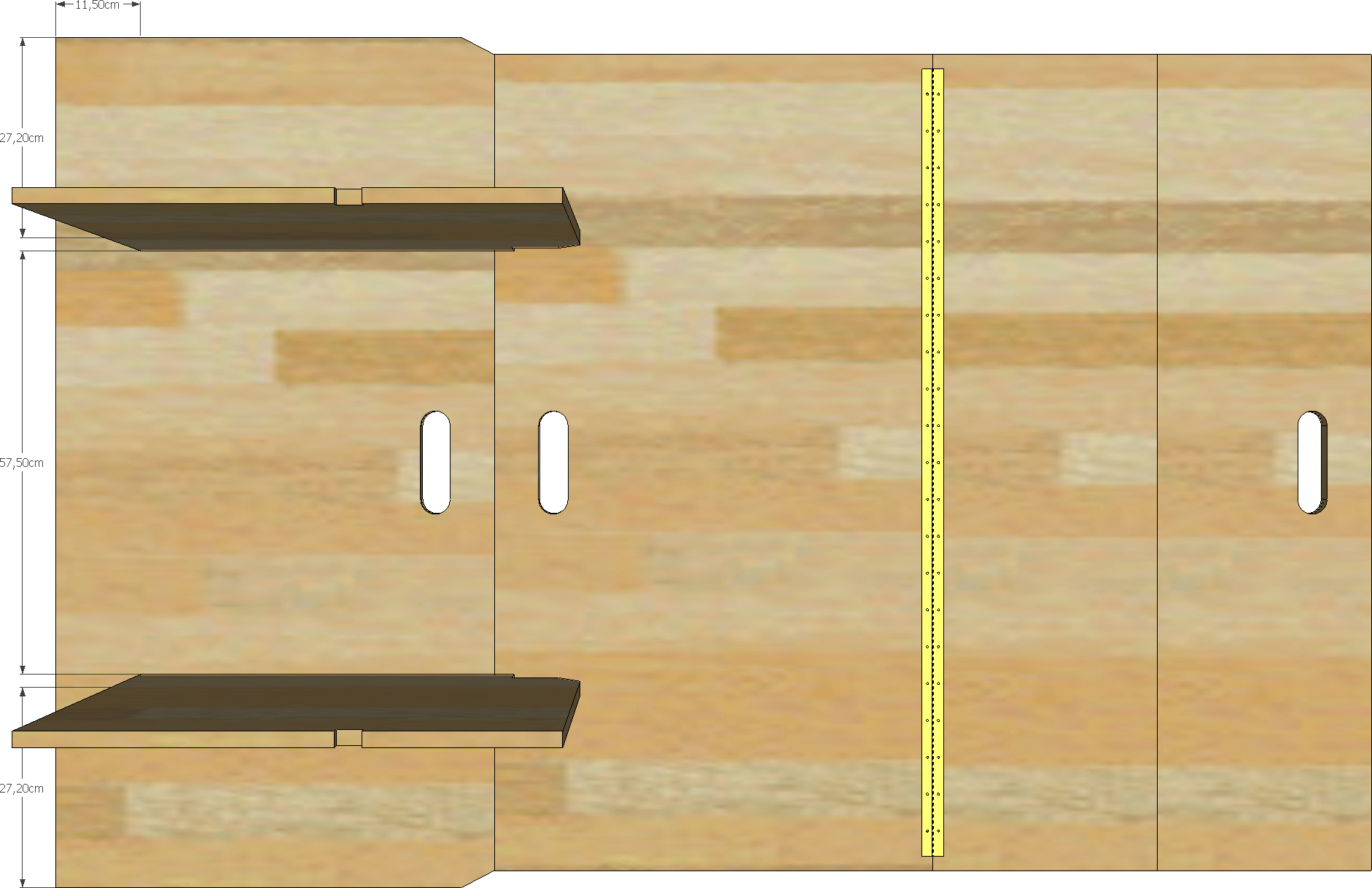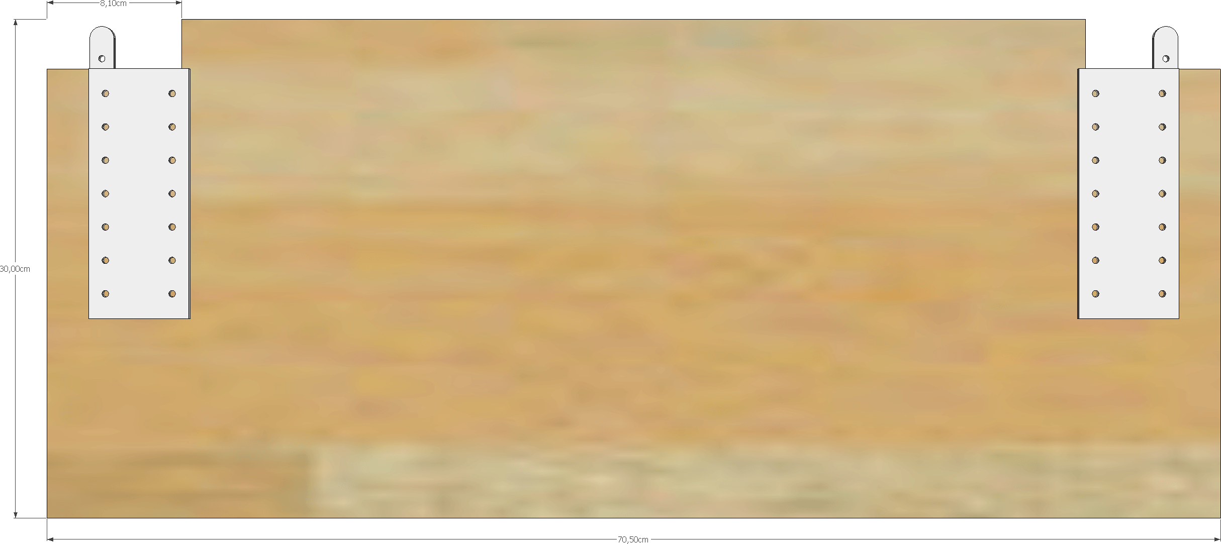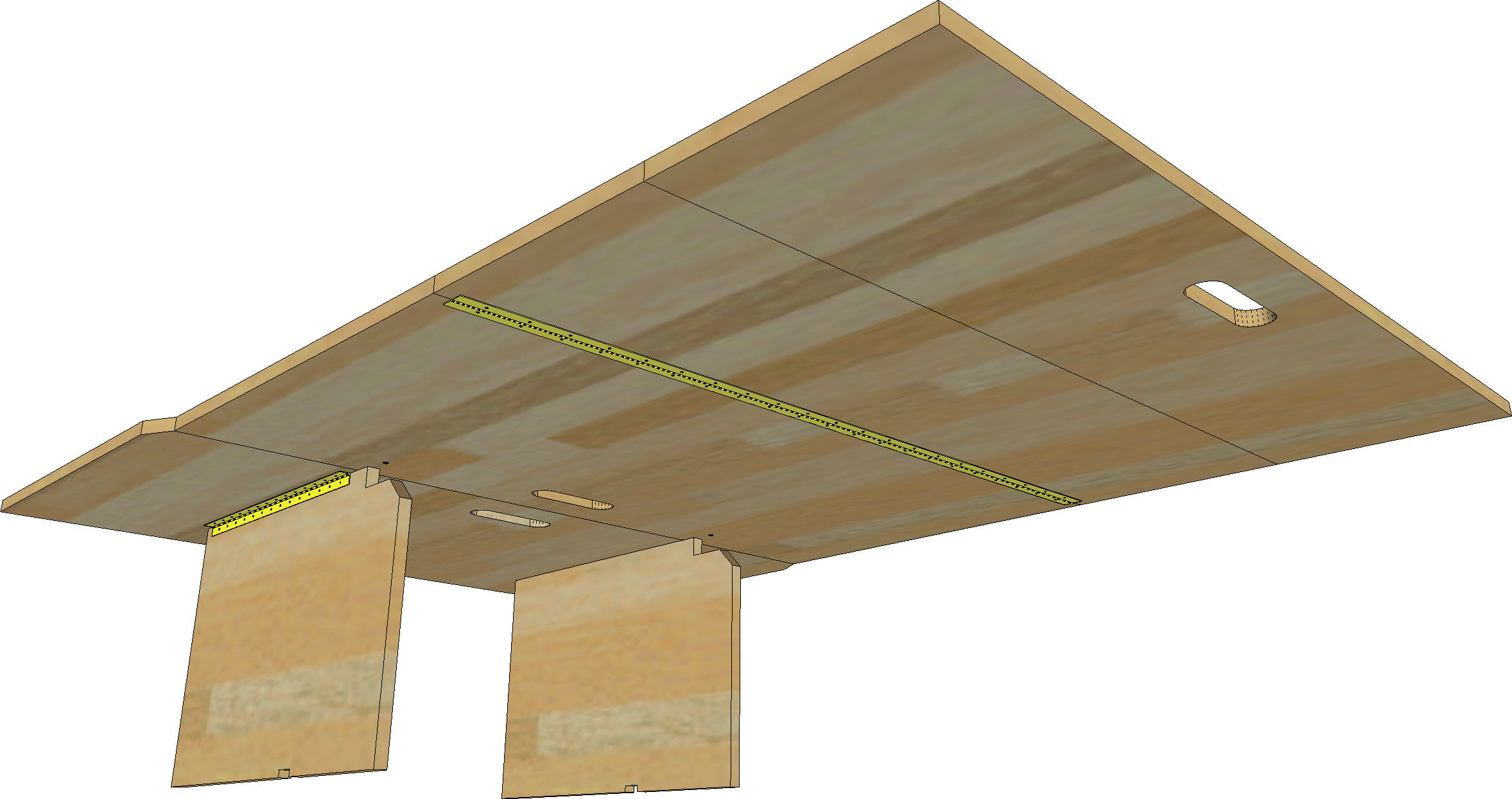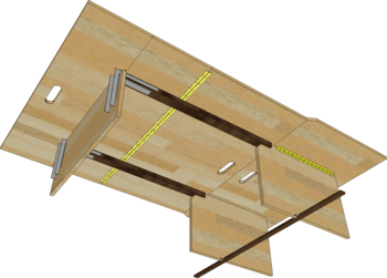 Composée d’un tasseau et 4 petites équerres, elle maintient ouvert les pieds arrière du sommier qui s’y emboîtent.