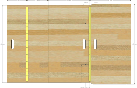 Il est fait de 4 planches sur lesquelles reposent le matelas et 2 autres planches pour les pieds. Toutes ces planches sont reliées avec des charnières type piano, permettant de la plier.