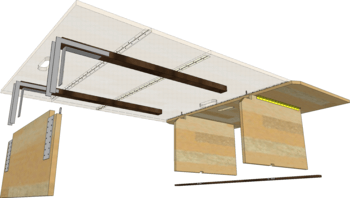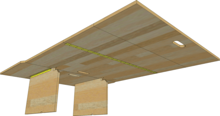 En mode lit, la planche la plus à l’avant est soutenue par une barre métallique (de penderie à vêtement) attachée aux supports de ceinture à l’aide de cordes. En mode conduite à 2 personnes, seule cette partie doit être rabattue (ainsi que le matelas).